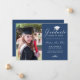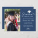 Elegant Blue White Script Cap Photo Graduation Announcement