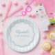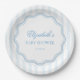 Elegant Blue White Stripes Wavy Scalloped Frame Paper Plate