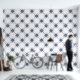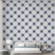 Easy to install peel and stick wallpaper with navy blue and white watercolor Mediterranean tile pattern inspired by Portuguese Azulejo, featuring an original illustration of elegant nature motifs. With its modern yet classic design with intricate details, this wallpaper is perfect for bathroom, kitchen, living or dining room wall. Bring timeless sophistication to your home interior design with this stunning tile patterned wallpaper, effortlessly blending tradition with a contemporary flair, creating a stylish and inviting living space.