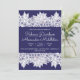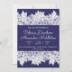 Elegant blue white wedding announcement. Your details are accented by top and bottom borders of line drawn Dianthus, Lily of the Valley, foliage and Lady Bugs. Cards reverse to a deep royal blue.