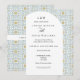 Announce your special day with this elegant wedding invitation featuring a sophisticated blue and yellow tile pattern border. The clean, modern layout uses a mix of classic serif and graceful script fonts to highlight your names and event details, creating a timeless and refined look. Perfect for couples seeking a stylish and unique invitation, this design is ideal for both traditional and contemporary weddings. Easily personalise with your wedding information for a memorable announcement.
