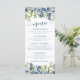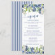 Blue elegant watercolor floral blueberry wedding menu cards.