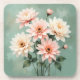 This artwork features five soft blush chrysanthemum flowers delicately painted with refined detail and graceful depth, set against a calm, muted green background. The gentle contrast creates a serene, luxurious feeling that brings warmth and quiet elegance to any space. Designed to be versatile, this floral artwork looks beautiful as wall art, posters, canvas prints, mugs, pillows, and thoughtful everyday gifts.