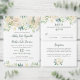 This elegant rustic style wedding ceremony program design features a beautiful border arrangement of neutral watercolor flowers, including painted roses, ranunculus flowers, and leaves in shades of white, blush pink, cream, gold, green. Perfect for a spring or summer event. Personalise the stylish leaf green and dark grey text on both sides of the card with your custom ceremony, wedding party, and thank you message wording.