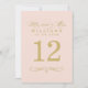 NOTE: Each table number card must be customised and individually added to the shopping cart. Elegant card includes a flourished Mr. and Mrs. monogram with champagne gold calligraphy and scroll design accents. Two sided design. To change the background colour (blush pink), go to Customise / Edit / Background.