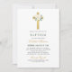 Elegant Blush Green Gold Floral Cross Girl Baptism Invitation