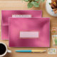 Elegant special occasion envelope done in graphics of a blush pink or dusty rose foil look, on the outside, and a gold foil, on the inside of the envelope. Gold edged white text areas for addresses, with fully custom black text, on the backside.