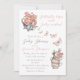 Elegant Butterflly Kisses and Baby Wishes themed Blush Pink and Grey Wild Flowers and Butterflies and Cups Watercolor Floral High Tea Brunch Baby Shower Party Invitation