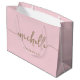 Elegant Blush Pink Chic Gold Monogram Script Large Gift Bag