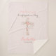 Elegant blush pink confirmation floral cross name sherpa blanket