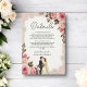 This elegant watercolor floral wedding enclosure card is perfect for a modern wedding. The romantic design features a sleek watercolor floral frame with a bride and groom illustration and black calligraphy on a white background.