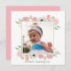 Simple and elegant, these baby's first birthday party invitations with photo template are the perfect way to invite friends and family to your baby's birthday party. The design features hand-painted watercolor blush pink and white flowers and green foliage frame around the photo on the back. The back features a matching blush pink colour. All typography is customisable to suit your celebration needs. Works great for any age birthday and has many matching accessories.