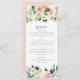 Elegant Blush Pink Floral Greenery Dinner Menu Invitation