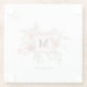 Elegant Blush Pink Floral Watercolor Monogram Glass Coaster.