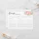 Elegant Blush Pink Floral Watercolor Bridal Shower Recipe Card