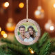 This beautiful holiday ornament features blush pink brushed metal and glitter background and personalised with your favourite photo and family name.