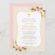 Elegant Blush Pink Gold Floral Baby Girl Baptism Invitation