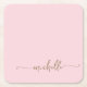 Elegant Blush Pink Gold Monogram Name Script Square Paper Coaster