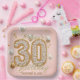 A stunning design where gilded "30" numbers are filled with luminous pearls, setting the stage for a milestone birthday. Gold confetti and pearlescent balloons drift across the soft blush background, creating a festive atmosphere. This paper plate is fully customisable with a name and date.