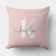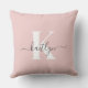 Elegant Blush Pink Grey Script Monogram Cushion