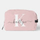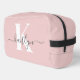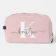 Elegant Blush Pink Grey Script Monogram Dopp Kit