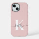 Elegant Blush Pink Grey Script Monogram iPhone 15 Case