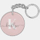 Elegant Blush Pink Grey Script Monogram Key Ring