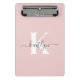 Elegant Blush Pink Grey Script Monogram Mini Clipboard