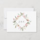 Elegant blush pink peonies and ivory watercolor flowers frame the top and bottom of this lovely spring wedding rsvp card. The sprigs of sage green leaves decorate in the midst of the peach floral array that surround the romantic script. A beautiful diamond bouquet wraps around the couple's initials on this delicate garden wedding response card.