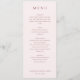This elegant wedding menu features a minimalist design with a soft blush pink background, creating a warm and inviting atmosphere. The layout is clean and structured, with ample white space that highlights the text in classic serif fonts for headings and sans-serif fonts for menu items, ensuring readability and sophistication. Customisable placeholders allow for personalisation with names and dates, making it perfect for a formal event. The overall style exudes refinement and celebration, ideal for couples looking to add a touch of elegance to their special day.