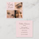 Elegant Blush Pink Mocha Script 3 Photo Lashes Square Business Card