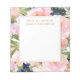 Personalized notepad with beautiful and elegant blush pink and navy blue watercolor floral and text, "From the desk of...Your Name." Contact us for help with customization or matching products.