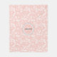Elegant fleece blanket with a blush pink paisley pattern and a white scripted monogram and grey name on a circle emblem. Personalise with your name and initial.