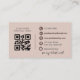 A modern, feminine business card featuring elegant script typography, a stylish blush pink background, and a scannable QR code for easy access to your portfolio or booking info. Perfect for makeup artists, beauty professionals, and anyone seeking a soft yet professional brand presence.