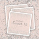 Sweet 16 birthday party paper napkins with silver glitter on a blush pink background and an elegant calligraphy/script font. Personalize with the name of the birthday girl and her party date. The background and text color of these napkins are completely customizable, so design them for your celebration.