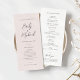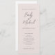Our slim soft blush pink & grey wedding program card is perfect for your minimalist wedding celebration. A beautiful grey calligraphy font paired with simple and clean text sits on a soft pink background to the front of the card. The white reverse has tonal grey text, creating an elegant & sophisticated look to complement your stylish event. Easy and quick to customise yourself with your own wedding details.