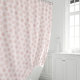 Unique bathroom decor for winter holidays with an elegant snowflakes pattern in blush pink.