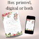 Modern and Elegant Blush Pink Flowers and Greenry Watercolor High Tea Brunch Alice in Wonderland Themed Floral Bridal Shower Invitation featured with wild roses and cups. matching items you can find in the same collection at my shop Patterndigitpics