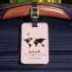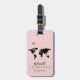 A nice and personalised pale pink luggage-tag with the map of the world and an aeroplane... to help identifying your luggage at the airport