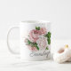 Elegant blush pink vintage floral / roses coffee mug with your name in a beautiful script font. Contact us for help with customisation or matching products.
