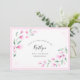 Elegant airy watercolor design. Twigs with blush pink flowers and green leaves resembling cherry blossom. Light pastel colours: blush pink, pink, light green, mint green. Blush pink border. Modern calligraphy font.