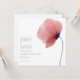 A modern minimalist floral wedding invitation features a pink watercolor poppy with dark grey typography. Personalise all the important details including bride and groom name, wedding date and location. The reverse side has your monogram in dark grey type