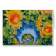 Romantic vibrant watercolor sunflower fields - blue, purple, teal, pink and yellow watercolor sunflower painting