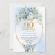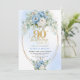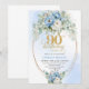 Elegant Boho Blue Floral 90th Birthday Invitation