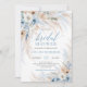 Elegant boho blue floral and ivory roses pampas grass bridal shower invitation,