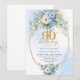 Elegant Boho Blue Floral Gold 90th Birthday Invite