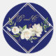 Elegant Boho Blue Floral Gold Wedding Monogram Classic Round Sticker