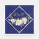 Elegant Boho Blue Floral Gold Wedding Monogram Napkin