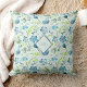 Elegant Boho Blue Green Watercolor Flowers Name Cushion