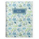 Elegant Boho Blue Green Watercolor Flowers Name Notebook